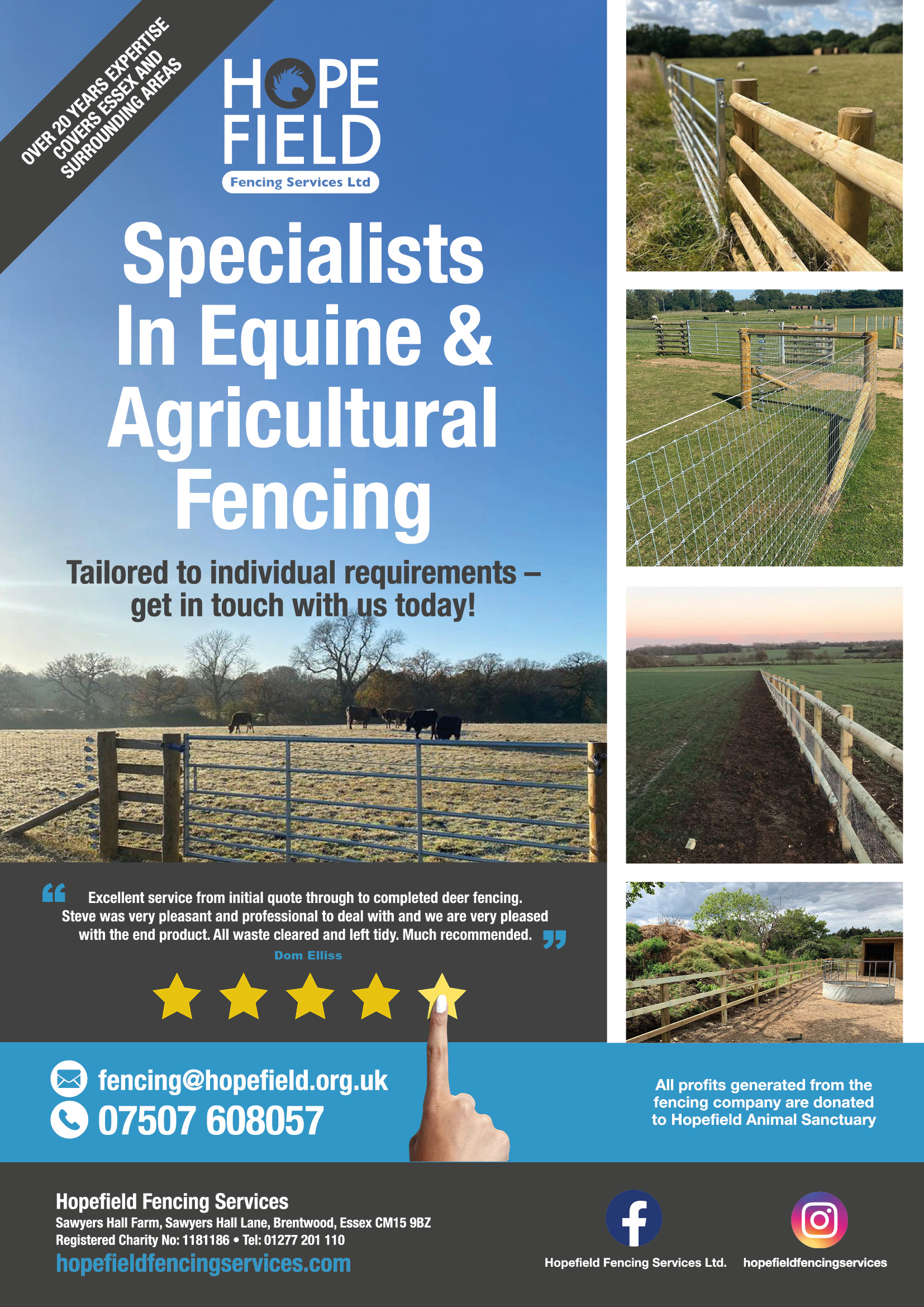 Collaborated with Hopefield Animal Sanctuary’s sister company to design a new logo and develop promotional leaflets for both agricultural and domestic fencing services.