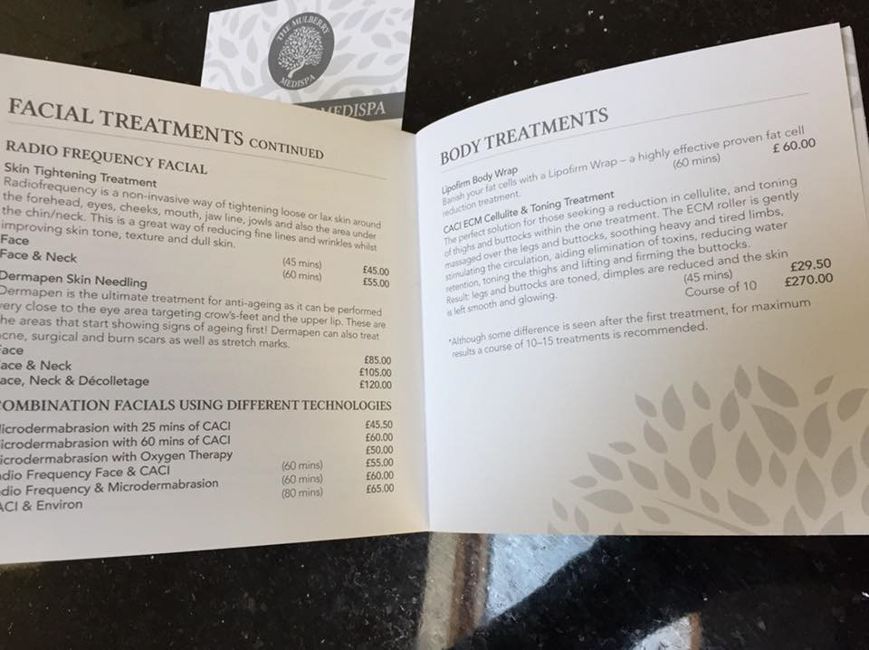 I worked recently with The Mulberry Spa, to create new Treatment Brochures and Medi Spa price lists.